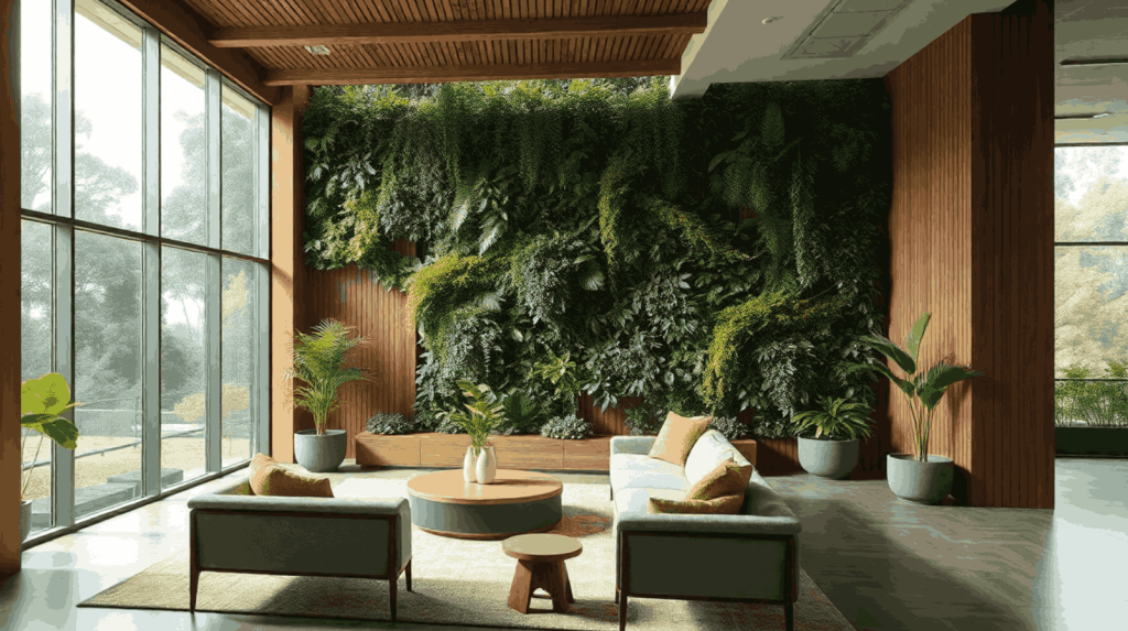 Konsep biophilic design kini menjadi pendekatan favorit dalam menciptakan ruang yang nyaman secara emosional. Gunakan elemen alami seperti batu alam, kayu oak, atau tanaman hijau hidup untuk menghadirkan keseimbangan visual dan psikologis. Dinding dengan taman vertikal (vertical garden) akan memberi sentuhan segar dan menenangkan.